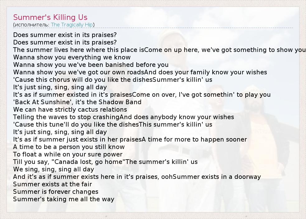 А как ты думаешь, о чем песня "Summer's Killing Us" ?