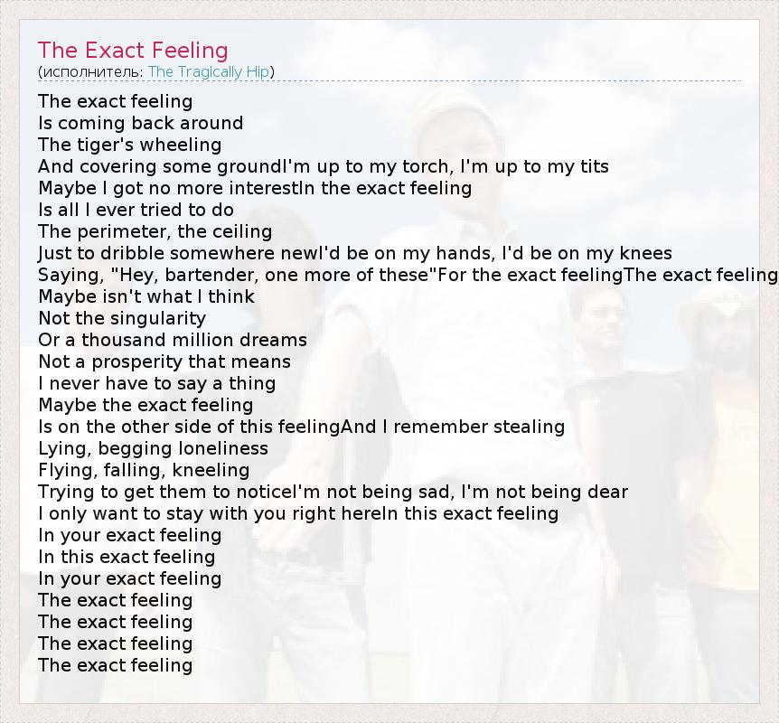 А как ты думаешь, о чем песня "The Exact Feeling" ?