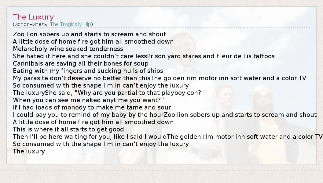 А как ты думаешь, о чем песня "The Luxury" ?