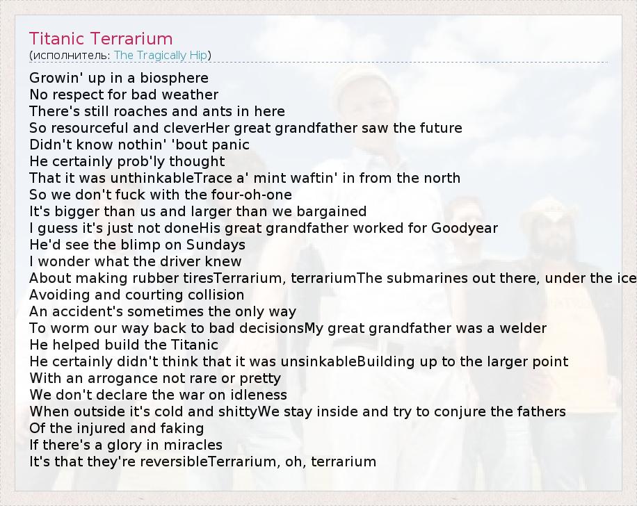 А как ты думаешь, о чем песня "Titanic Terrarium" ?
