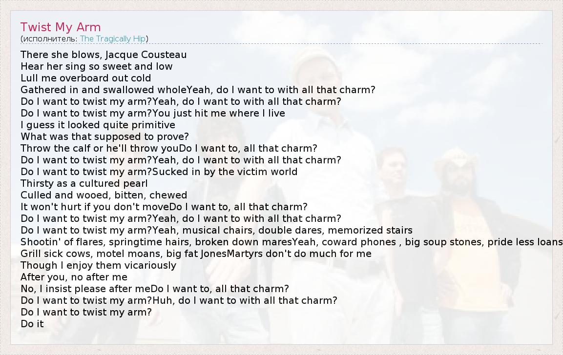 А как ты думаешь, о чем песня "Twist My Arm" ?