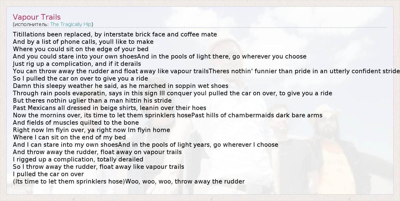 А как ты думаешь, о чем песня "Vapour Trails" ?