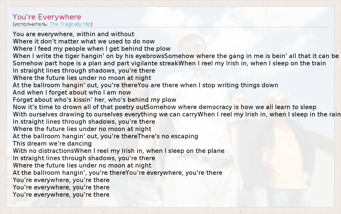 А как ты думаешь, о чем песня "You're Everywhere" ?