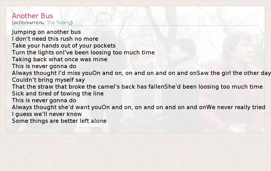 А как ты думаешь, о чем песня "Another Bus" ?