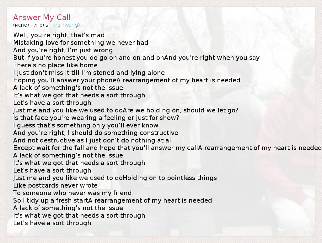 А как ты думаешь, о чем песня "Answer My Call" ?