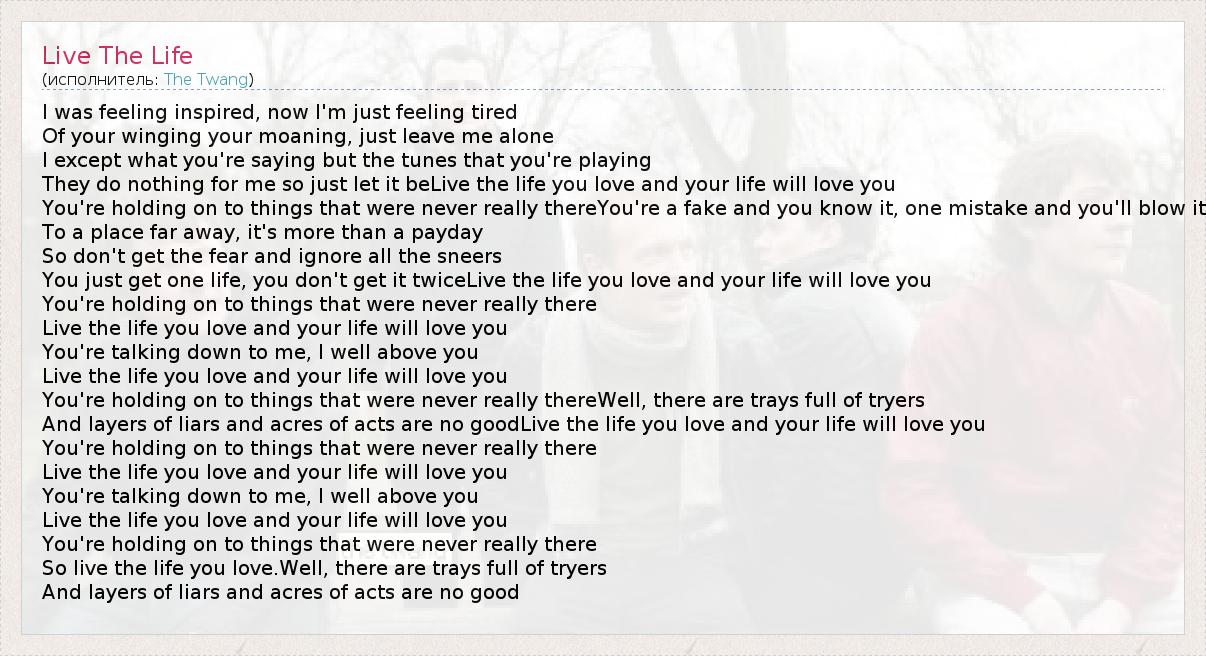 Это интересно:Смешав сочные гитарные партии в духе бритпопа с танцевальным пульсирующим битом, The Twang взяли отличный старт в 2004 году. Вдохновлённые такими группами, как Oasis и the Streets, а также группами "мадчестерской" волны вроде Happy Mondays, The Twang внесли свежую танцевальную струю в перезаполненную гитарными инди-группами новую британскую музыку. Начинавшие под названием Neon Twang, парни быстро стали... продолжение