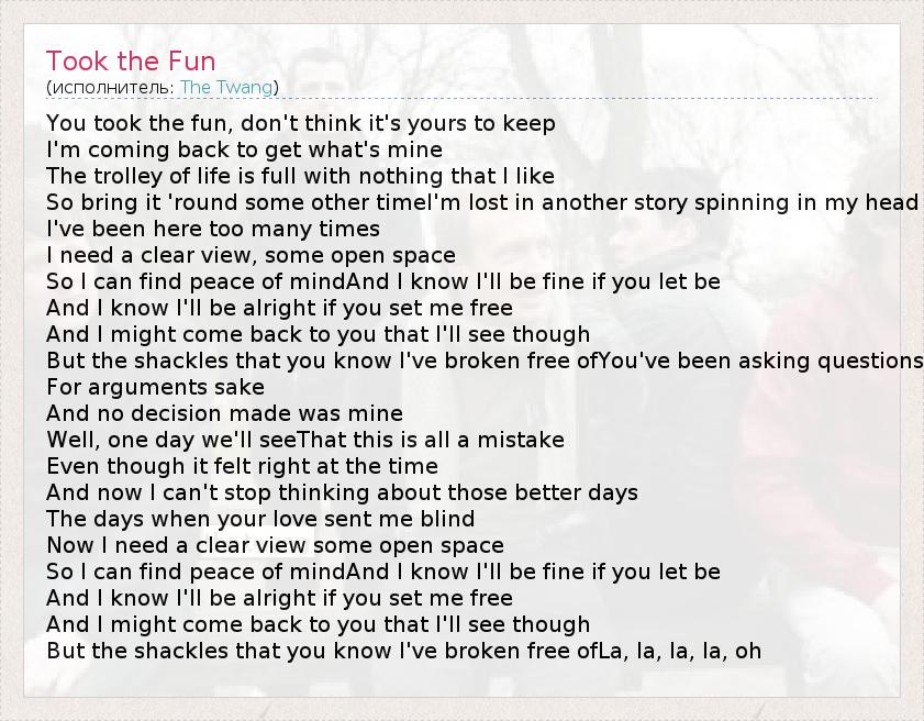 А как ты думаешь, о чем песня "Took the Fun" ?