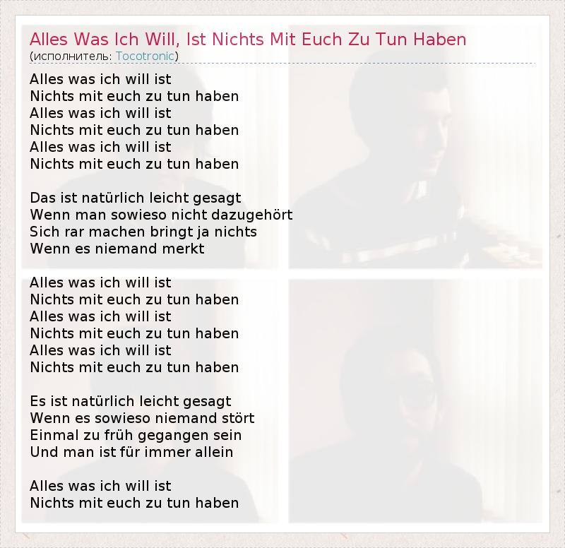 А как ты думаешь, о чем песня "Alles Was Ich Will, Ist Nichts Mit Euch Zu Tun Haben" ?
