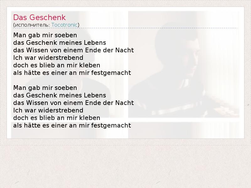 А как ты думаешь, о чем песня "Das Geschenk" ?