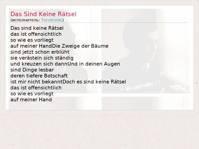 А как ты думаешь, о чем песня "Das Sind Keine Rätsel" ?