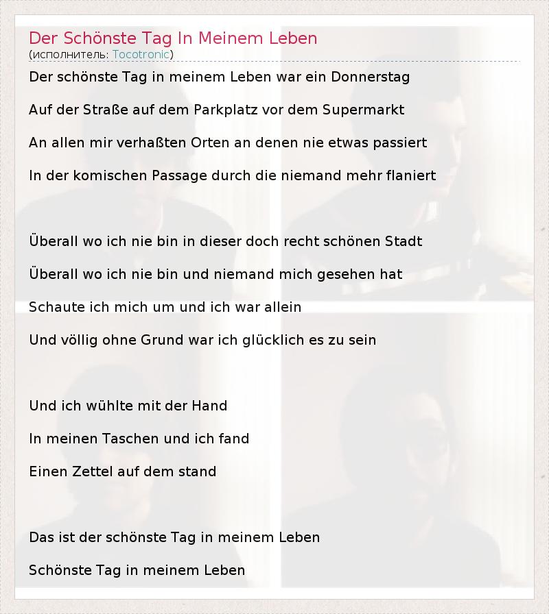 А как ты думаешь, о чем песня "Der Schönste Tag In Meinem Leben" ?