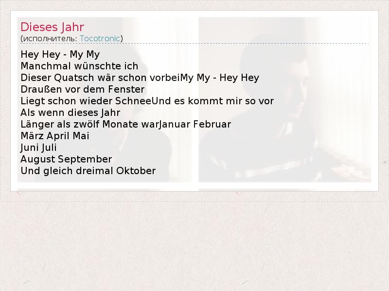 А как ты думаешь, о чем песня "Dieses Jahr" ?