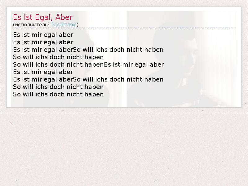 А как ты думаешь, о чем песня "Es Ist Egal, Aber" ?