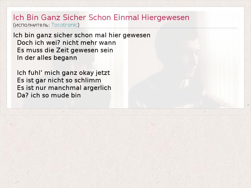 А как ты думаешь, о чем песня "Ich Bin Ganz Sicher Schon Einmal Hiergewesen" ?