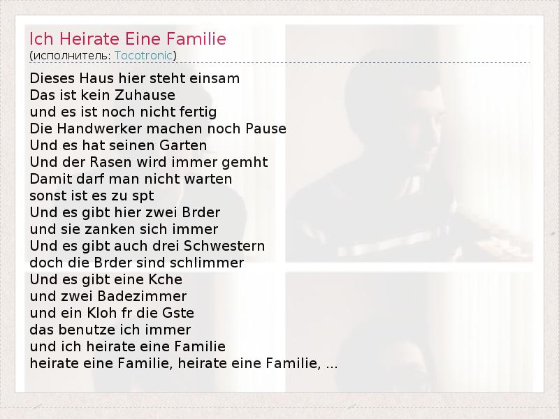 А как ты думаешь, о чем песня "Ich Heirate Eine Familie" ?