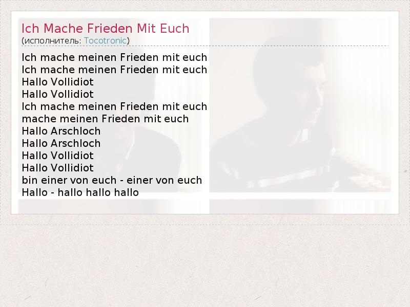 А как ты думаешь, о чем песня "Ich Mache Frieden Mit Euch" ?