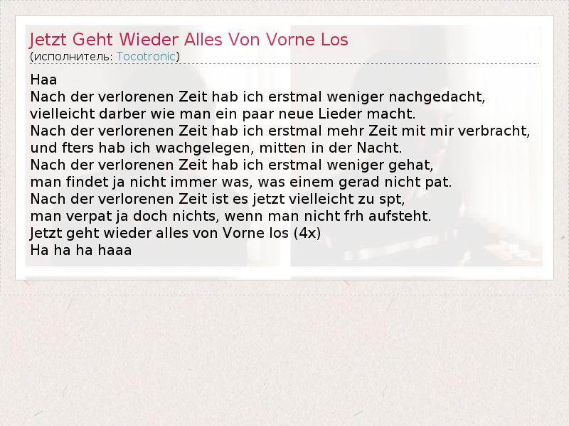А как ты думаешь, о чем песня "Jetzt Geht Wieder Alles Von Vorne Los" ?
