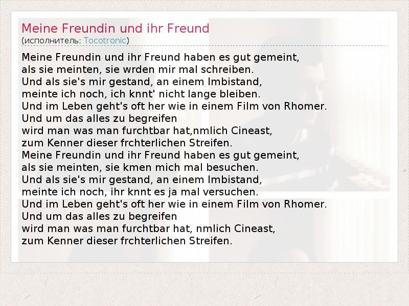 А как ты думаешь, о чем песня "Meine Freundin und ihr Freund" ?
