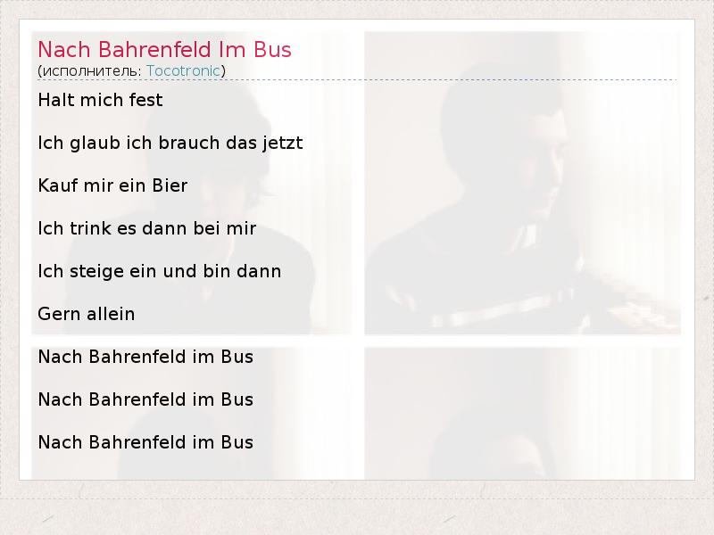 А как ты думаешь, о чем песня "Nach Bahrenfeld Im Bus" ?
