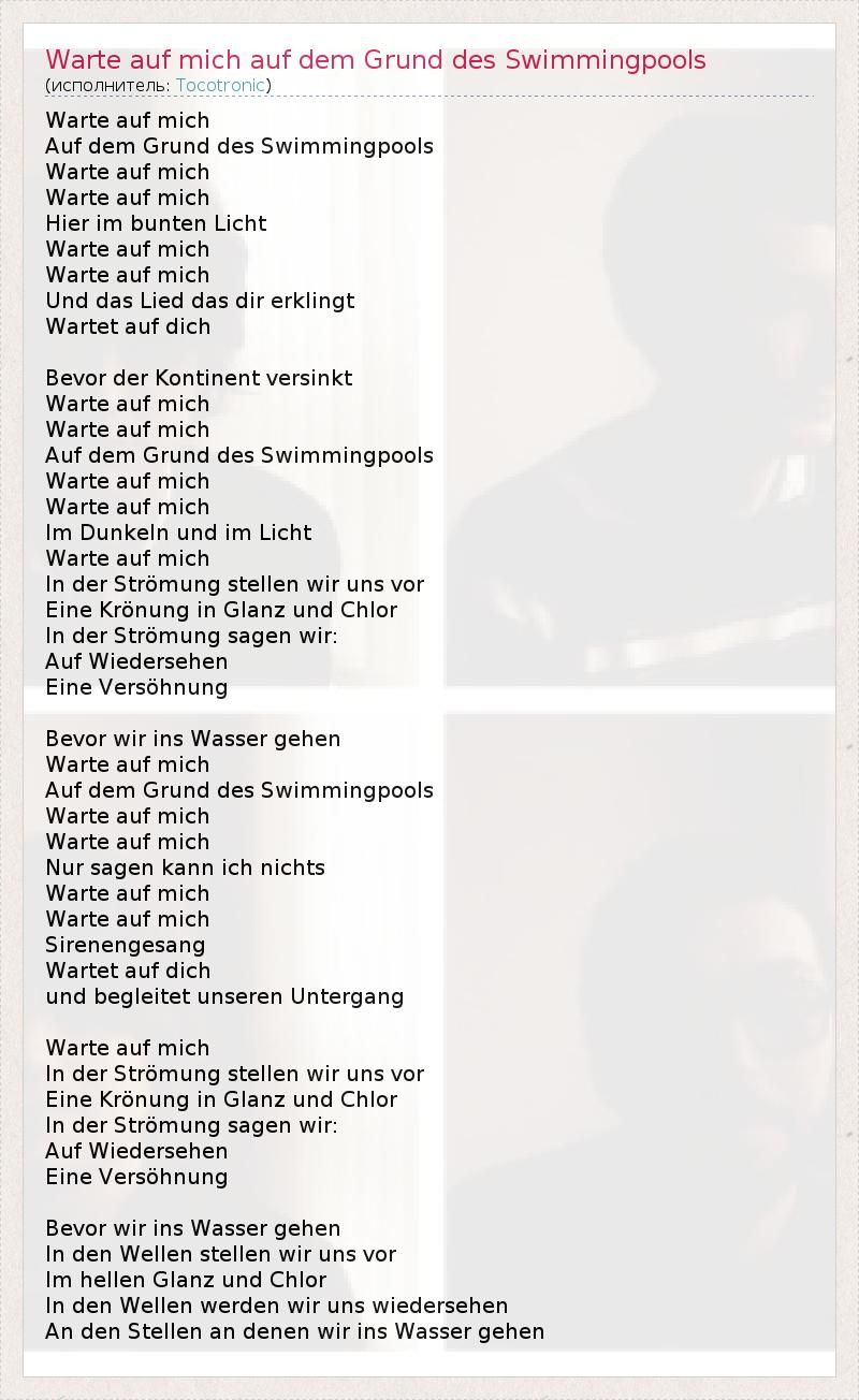 А как ты думаешь, о чем песня "Warte auf mich auf dem Grund des Swimmingpools" ?