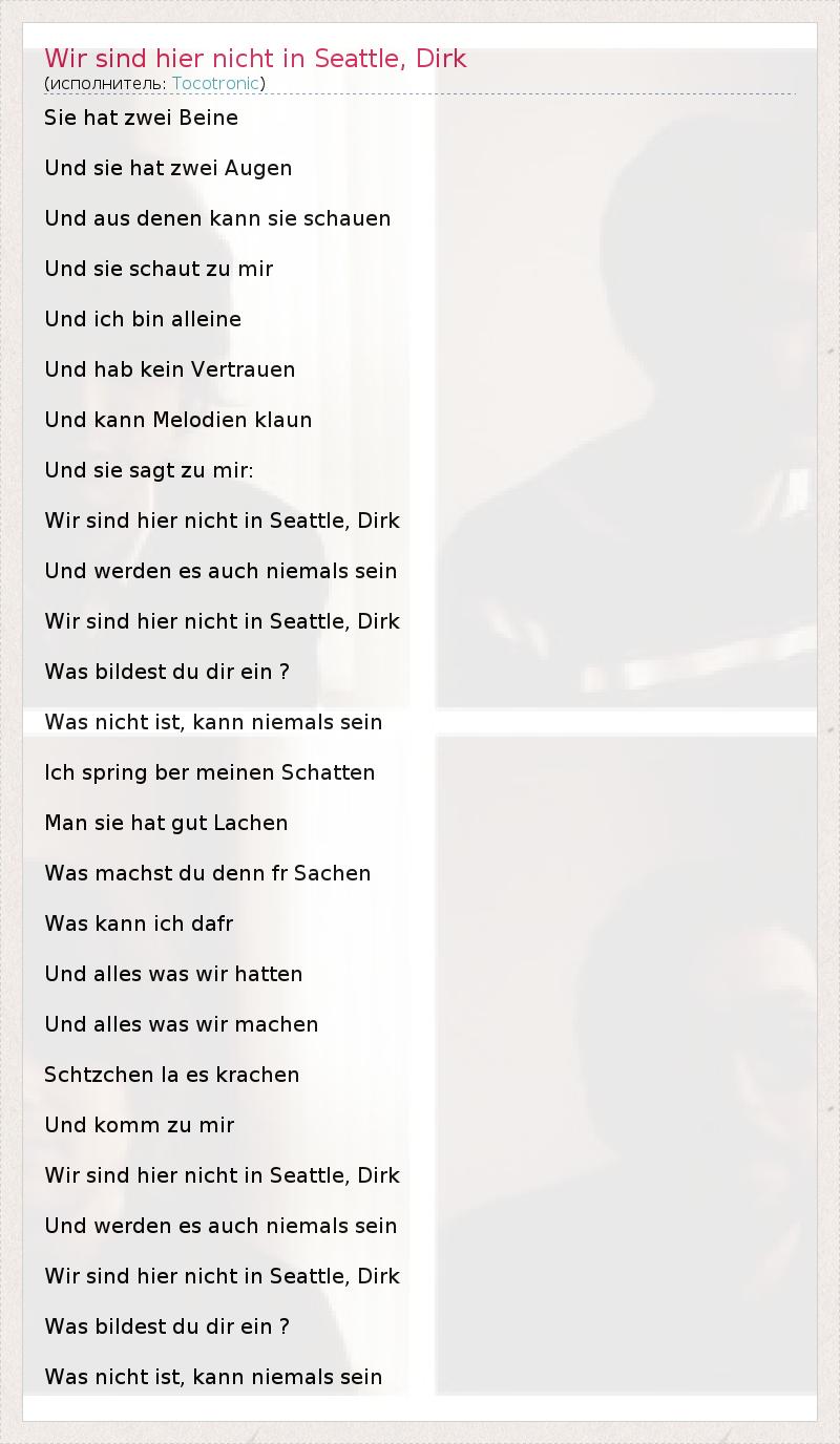 А как ты думаешь, о чем песня "Wir sind hier nicht in Seattle, Dirk" ?