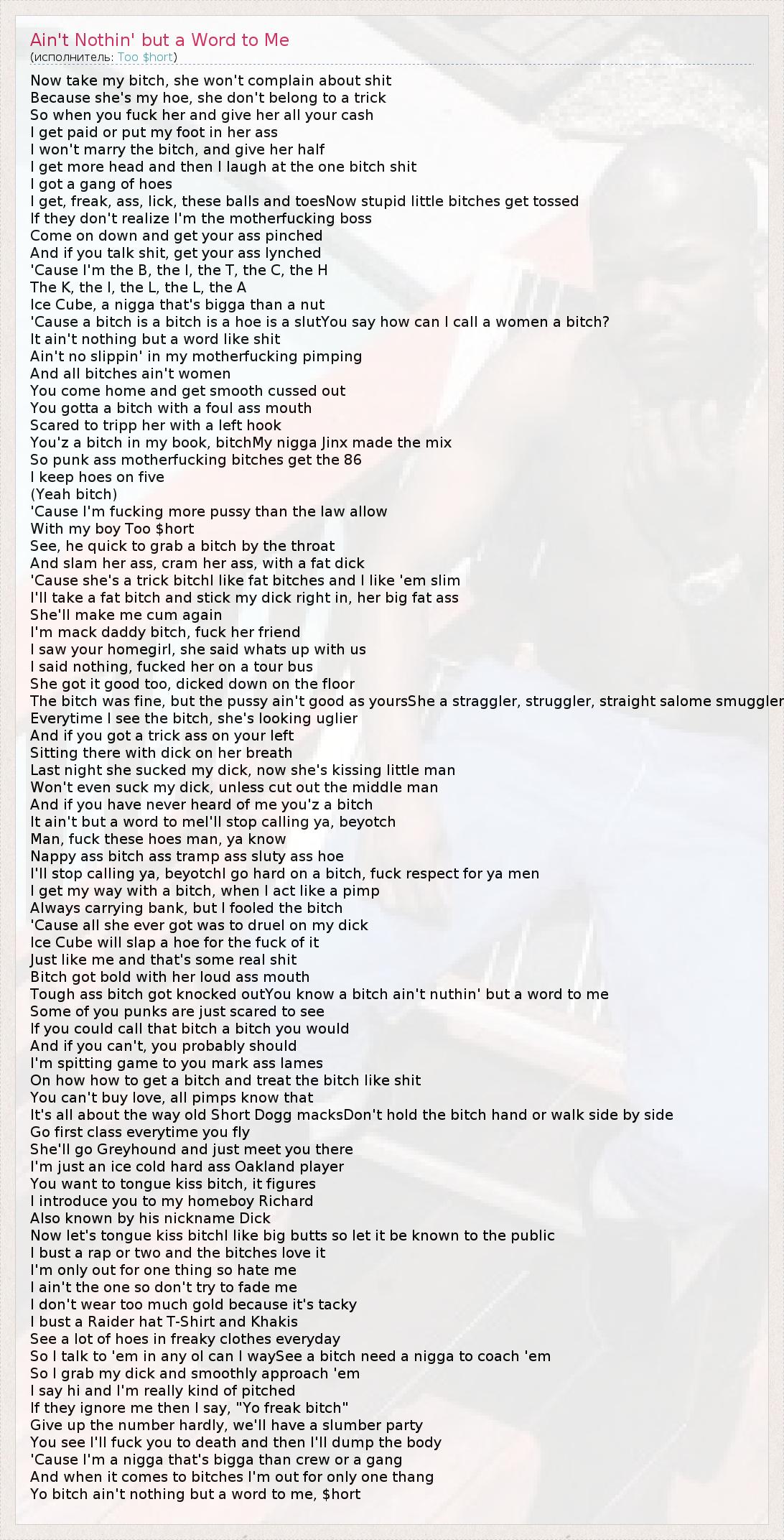 А как ты думаешь, о чем песня "Ain't Nothin' but a Word to Me" ?