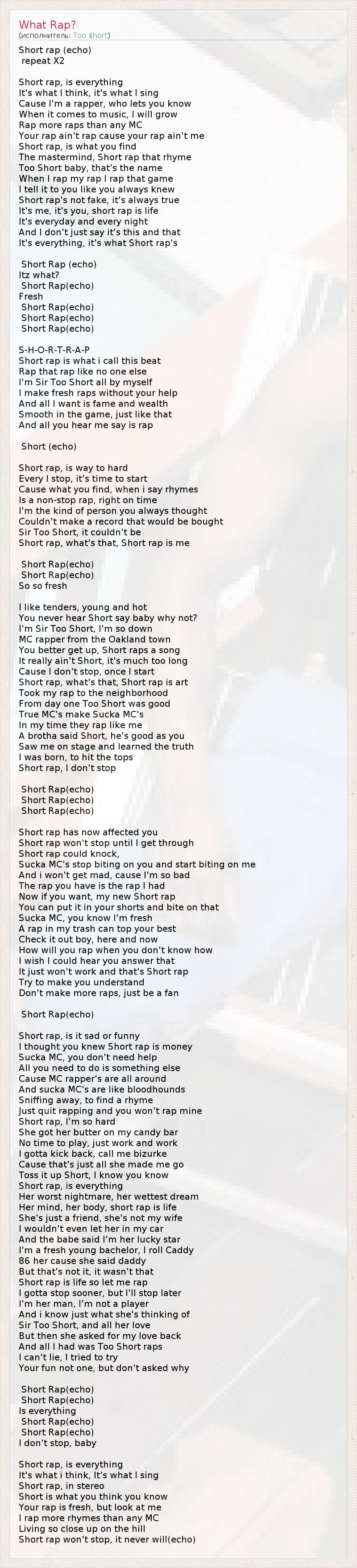 Это интересно:Too Short является выходцем из Оукленда. Стал первой рэп звездой с западного побережья, записав самостоятельно три альбома. После чего в 1988 году на крупном лейбле он выпускает свой первый альбом, достигший золотого статуса, под названием "Born To Mack". Четыре следующих альбома достигли платинового статуса. Упредив большинство будущих гэнгста рэпперов, он ограничивался рассказами о сексе... продолжение