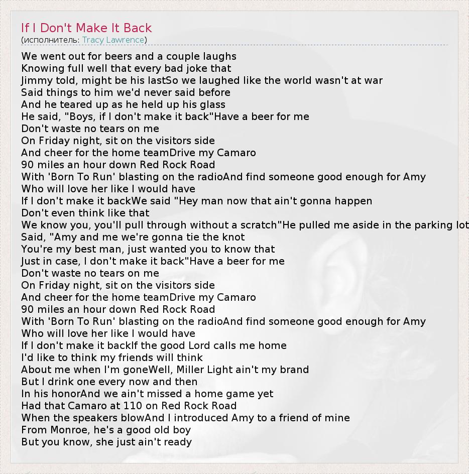А как ты думаешь, о чем песня "If I Don't Make It Back" ?