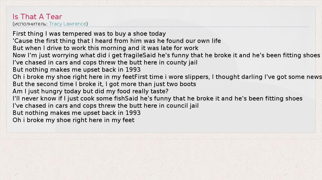 А как ты думаешь, о чем песня "Is That A Tear" ?