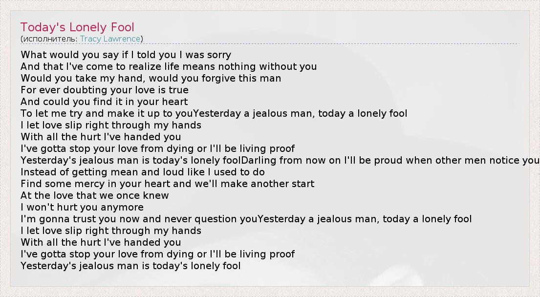 А как ты думаешь, о чем песня "Today's Lonely Fool" ?
