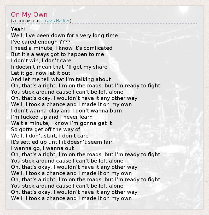 А как ты думаешь, о чем песня "On My Own" ?