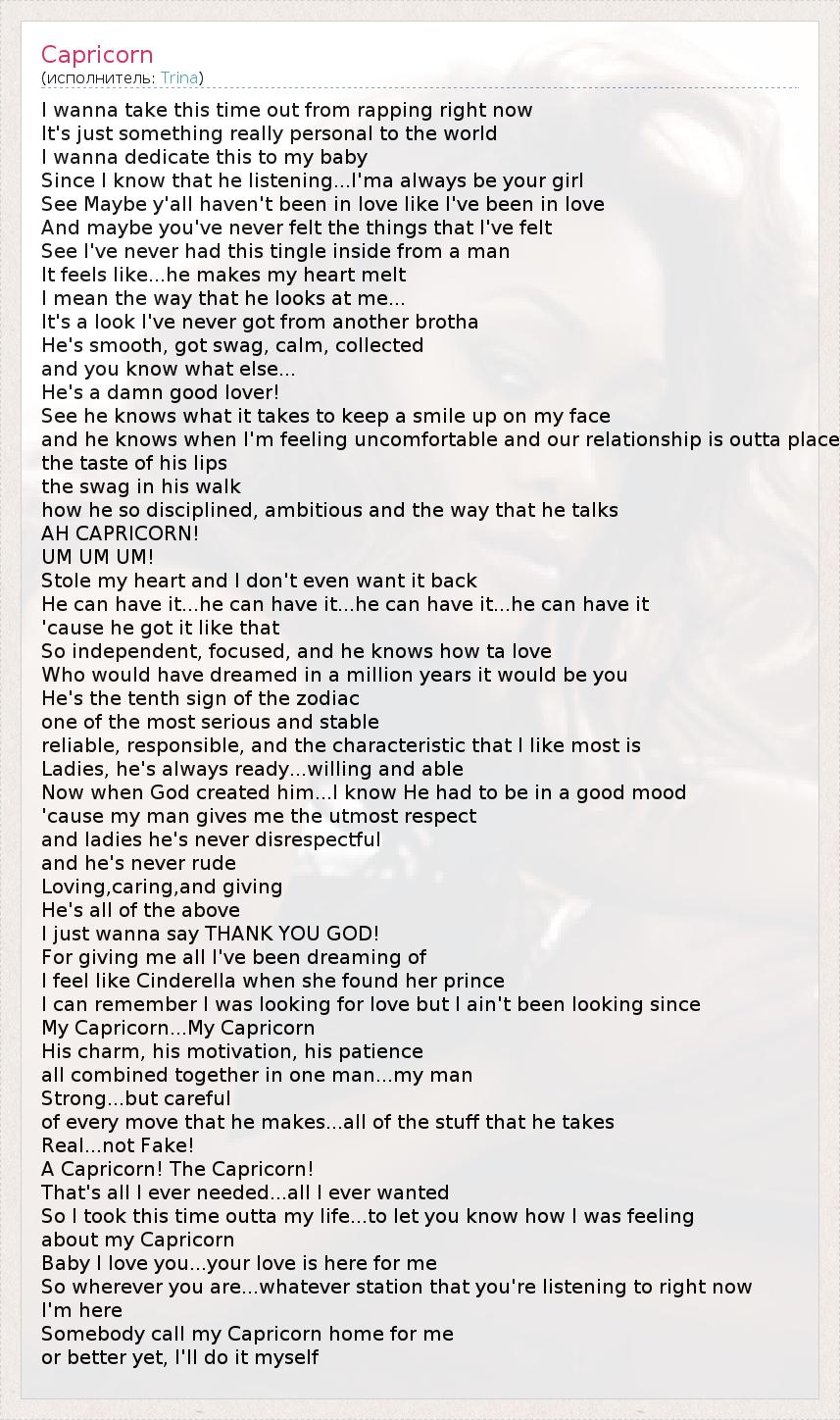 А как ты думаешь, о чем песня "Capricorn" ?