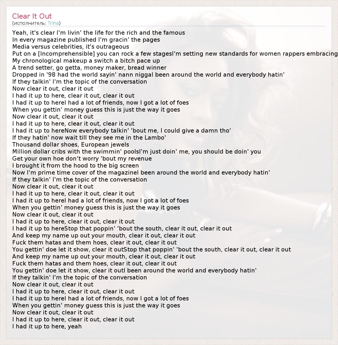 А как ты думаешь, о чем песня "Clear It Out" ?