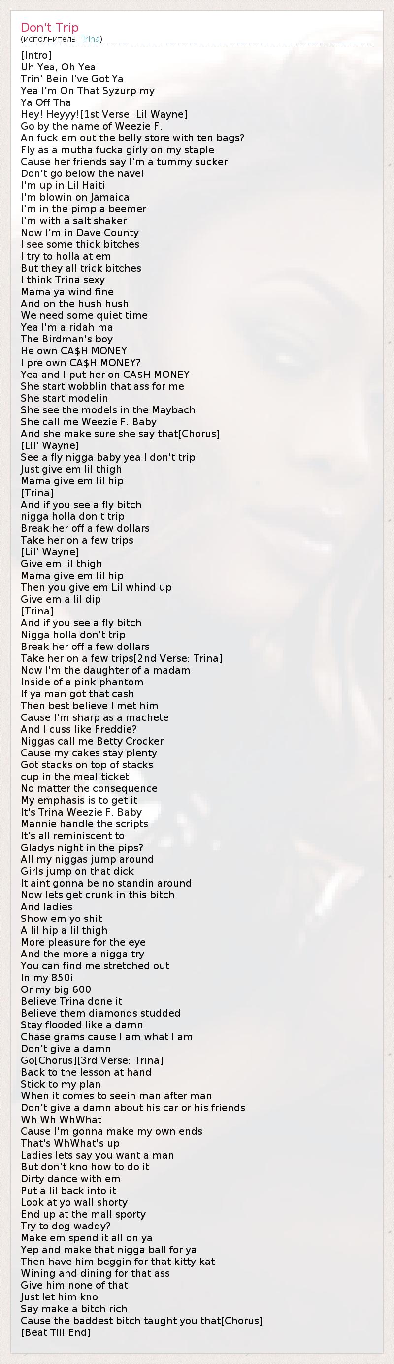 А как ты думаешь, о чем песня "Don't Trip" ?