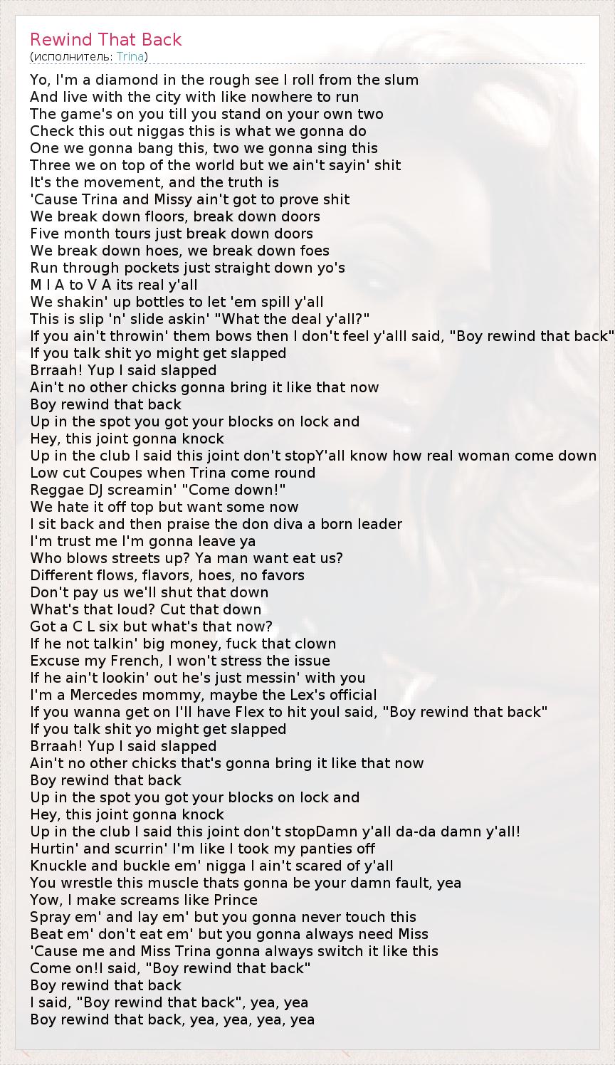 А как ты думаешь, о чем песня "Rewind That Back" ?