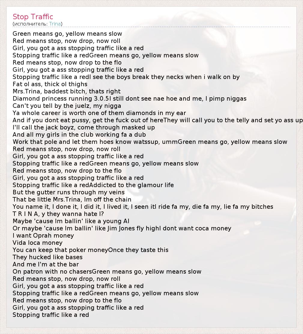 А как ты думаешь, о чем песня "Stop Traffic" ?