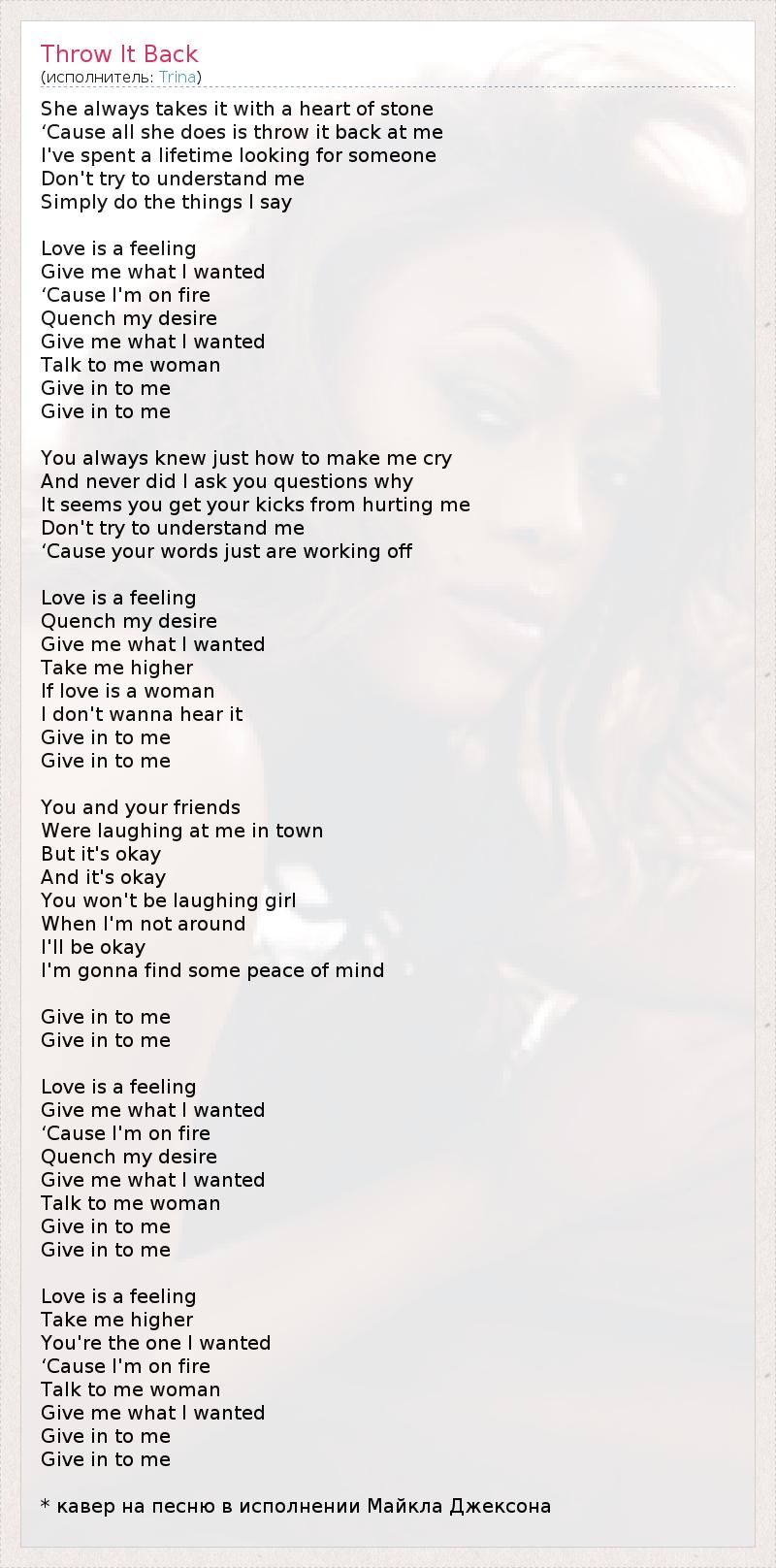 А как ты думаешь, о чем песня "Throw It Back" ?
