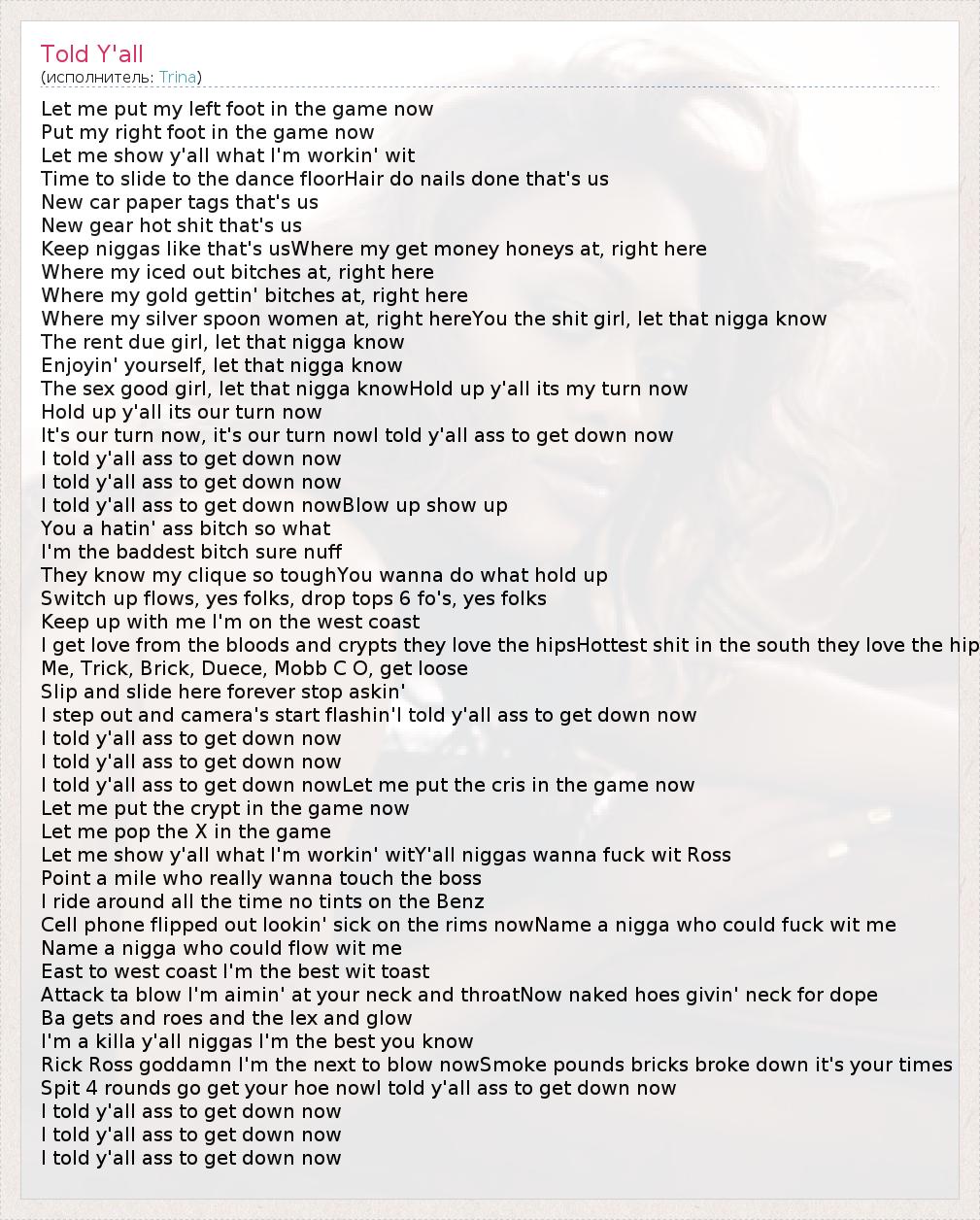 А как ты думаешь, о чем песня "Told Y'all" ?