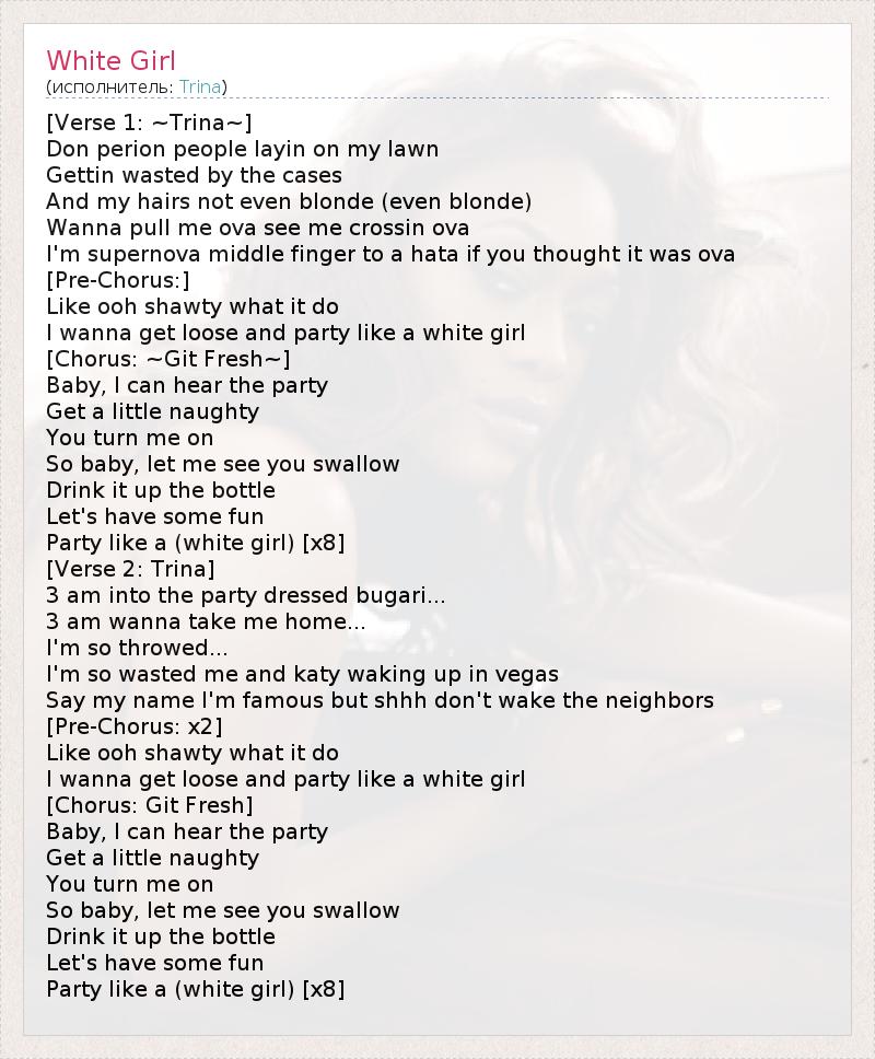 Это интересно:Катрина Лаверн Тэйлор, более известная под сценическим именем Трина, родилась 3 декабря 1978 г. в Майами, Флорида, США.Трина дебютировала с песней «Nann Nigga» в 1998 г. на музыкальном лейбле 'Slip-N-Slide' при поддержке Трика Дэдди. Ее первые два альбома, «золотой» по продажам дебют «Da Baddest Bitch», 2000 г., и последующий «Diamond Princess», 2002 г., получивший подобный статус. Альбомы были выполнены в так называемом... продолжение