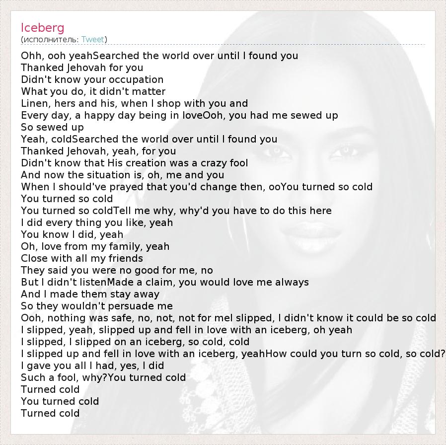 I slipped up and fell in love with an iceberg, yeahHow could you turn so cold, so cold?