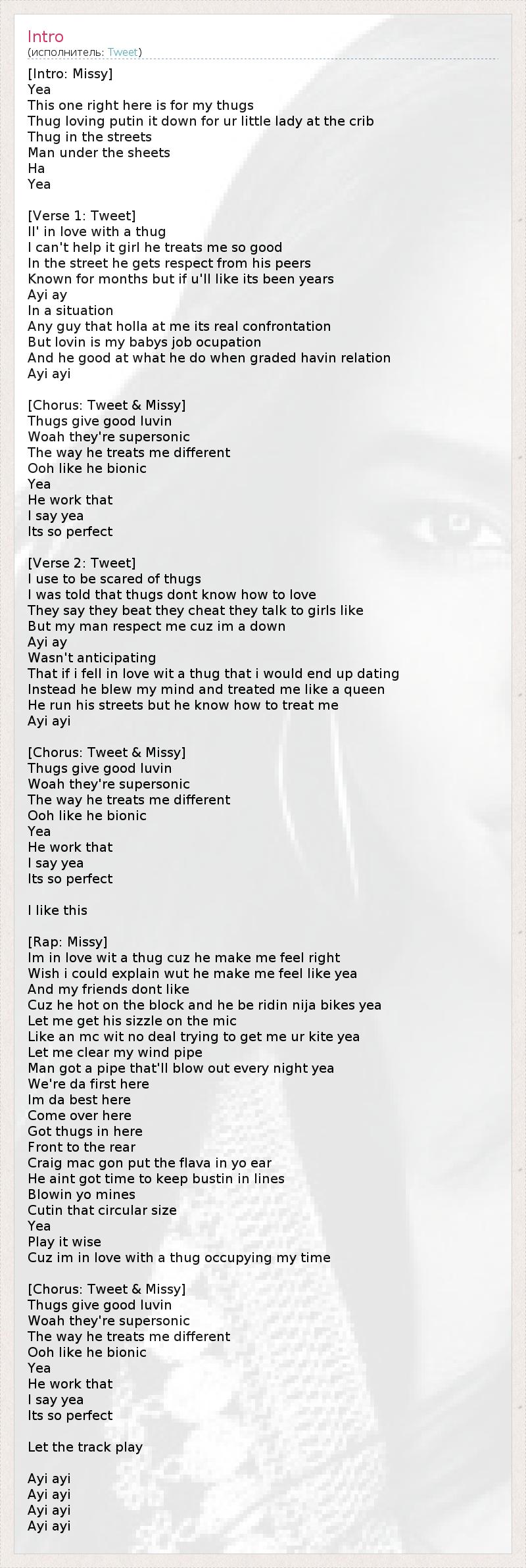 Это интересно:Tweet пела, играла на различных инструментах, и писала песни с тех самых пор, как помнит себя, однако шесть лет труда по контракту со звукозаписывающей компанией подкосили ее и заставили почувствовать себя поверженной.Разбитая переживаниями, девушка прожила какое-то время одна в доме своих родителей во Флориде. Tweet настолько глубоко погрузилась в депрессию, что даже хотела покончить... продолжение