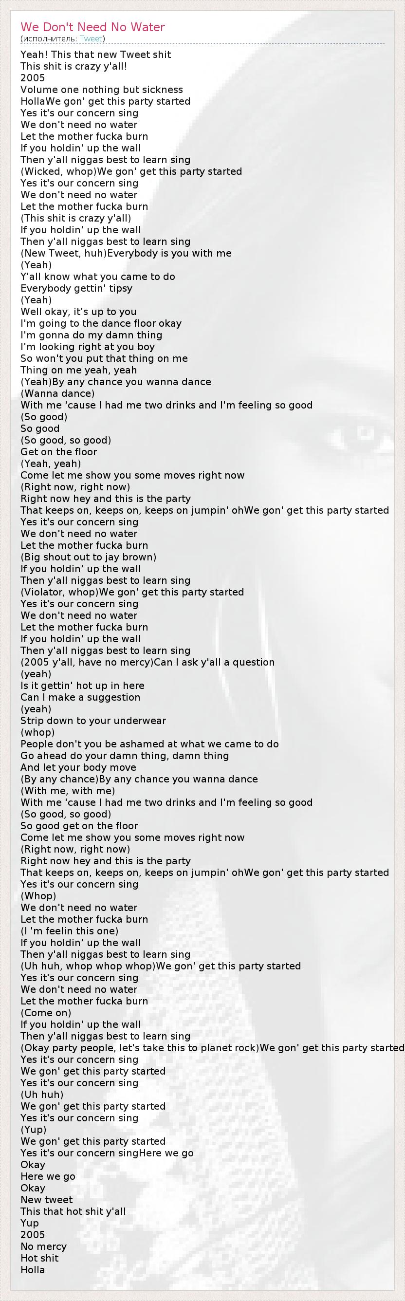 ГлавнаяИсполнителиTweetWe Don't Need No Water