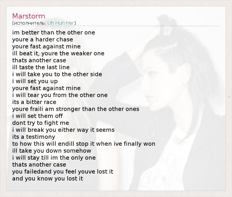 Это интересно:Uh Huh Her – коллектив из Лос-Анджелеса, США, в состав которого входят: Leisha Hailey (бэк-вокал/синтезатор/бас), Camilla Grey (синтезатор/гитара/вокал), Alicia Warrington (ударные). За год девушки успели записать EP "I See Red" и альбом "Common Reaction". Чувственные и лёгкие, не напрягающие песни никого не оставит равнодушным. Волшебный вокал Камиллы в сочетаниями с такой богатой звуками музыкой, завораживает.... продолжение