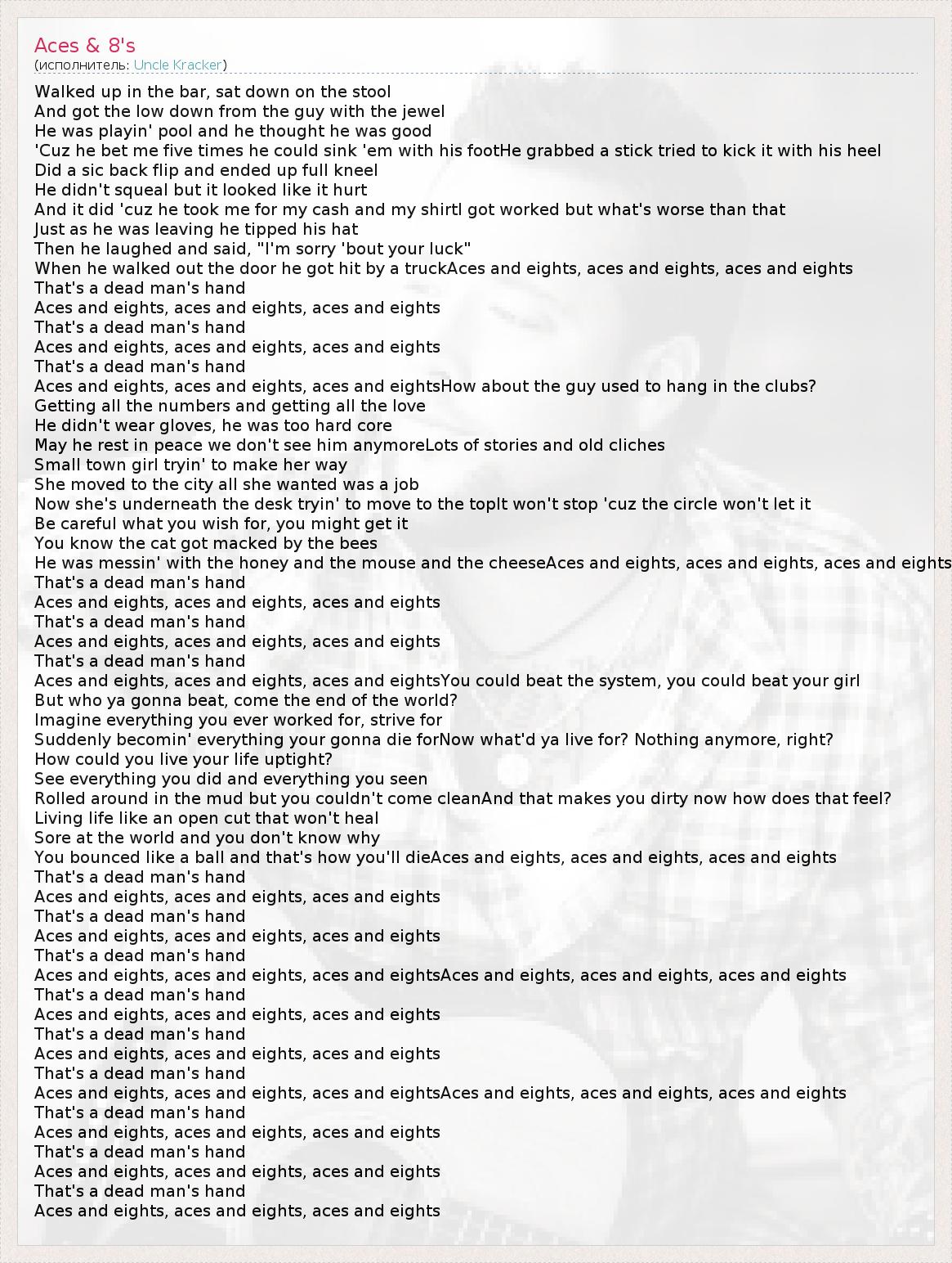 А как ты думаешь, о чем песня "Aces & 8's" ?