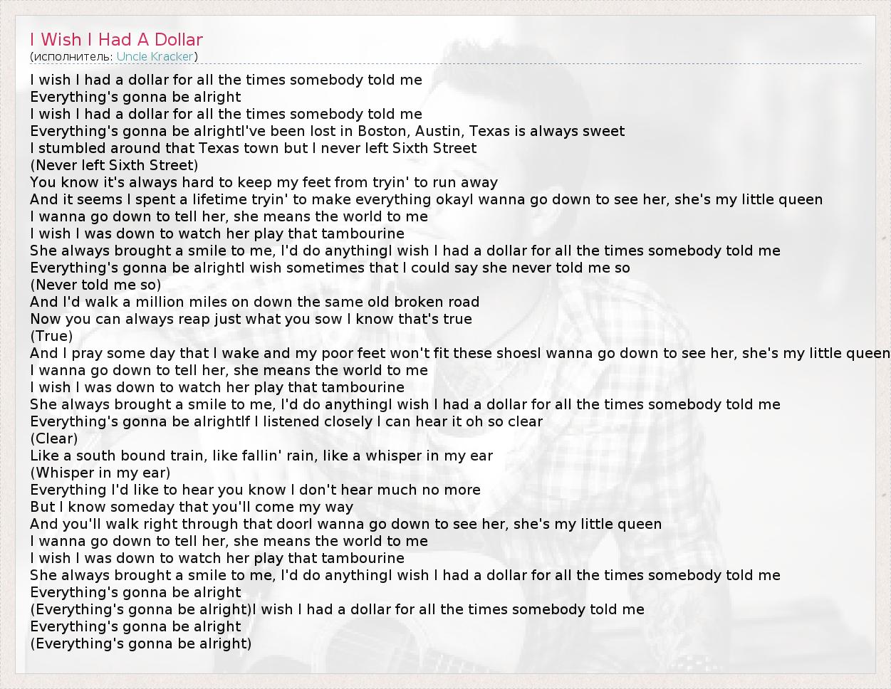 А как ты думаешь, о чем песня "I Wish I Had A Dollar" ?