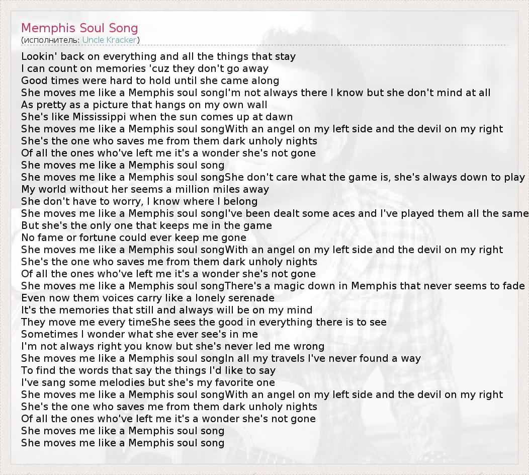 А как ты думаешь, о чем песня "Memphis Soul Song" ?