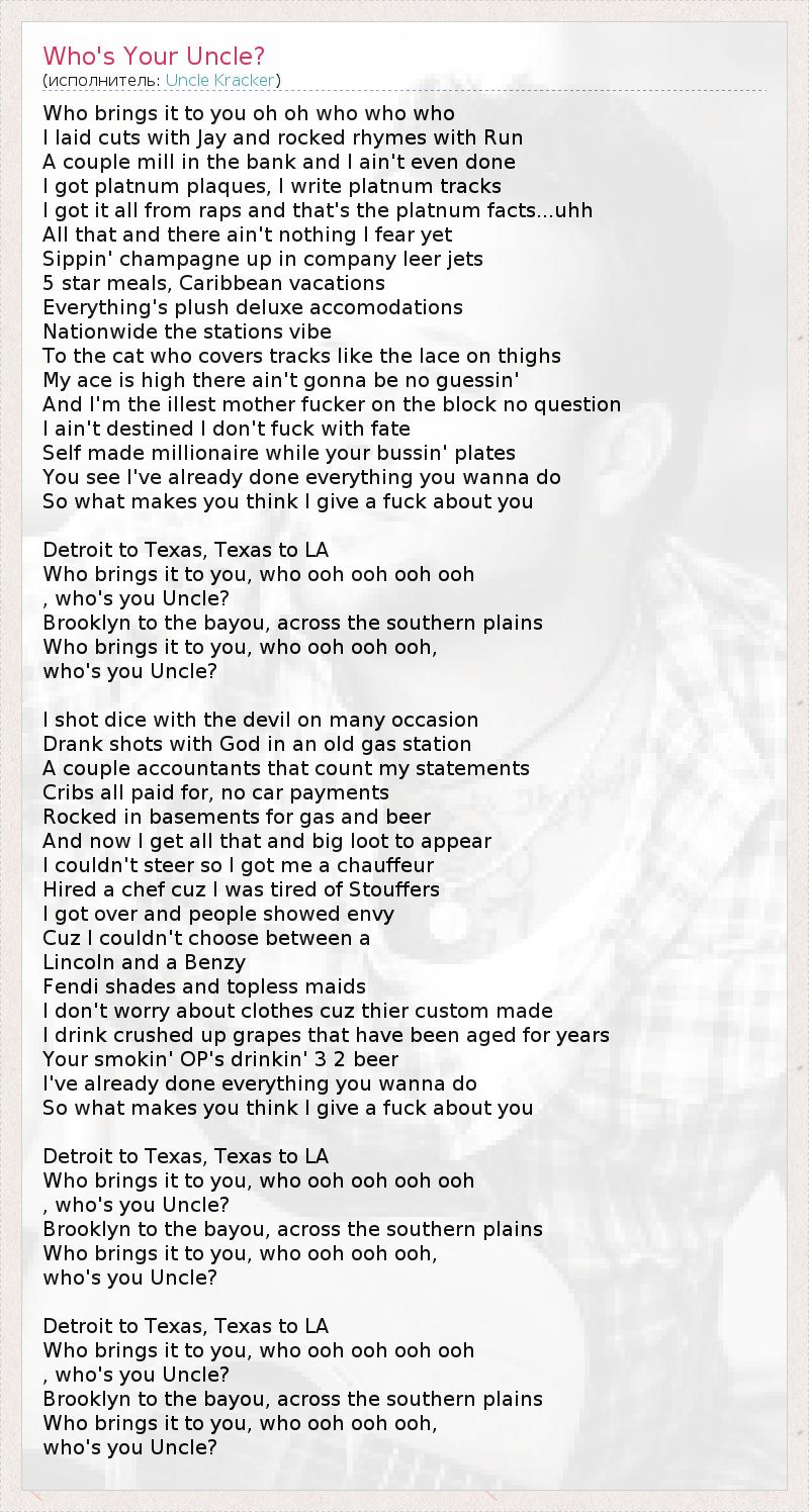 А как ты думаешь, о чем песня "Who's Your Uncle?" ?