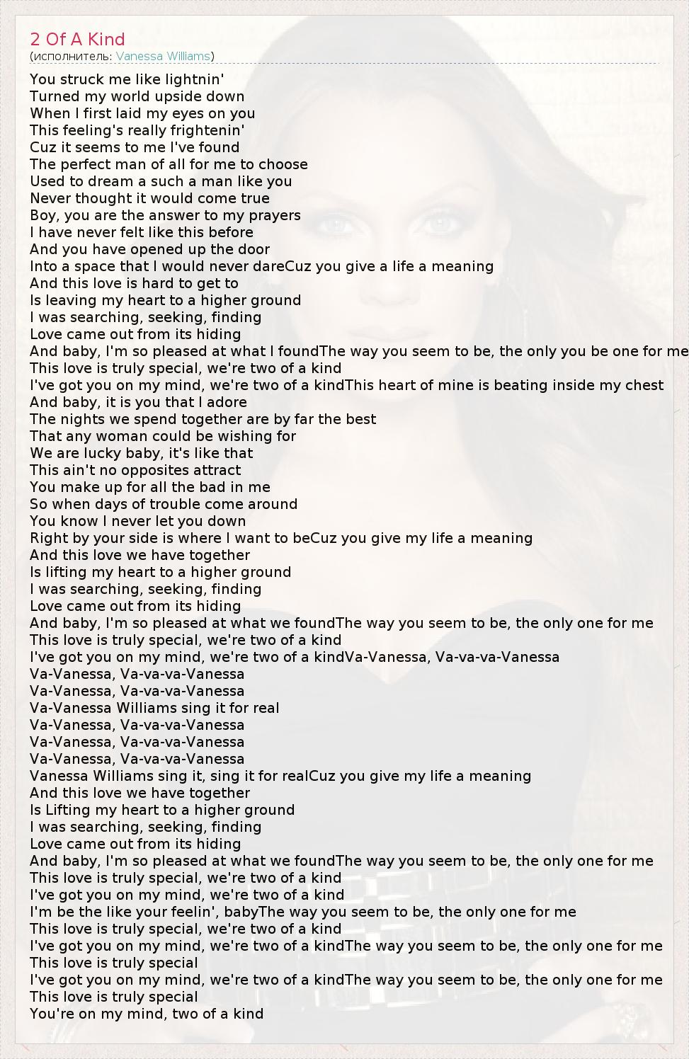 I've got you on my mind, we're two of a kindVa-Vanessa, Va-va-va-Vanessa