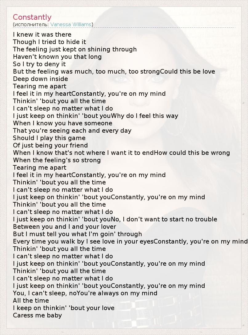 I just keep on thinkin' 'bout youConstantly, you're on my mind