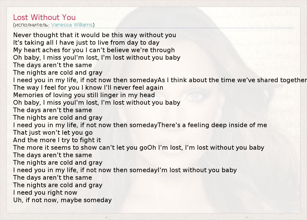 The more it seems to show can't let you goOh I'm lost, I'm lost without you baby